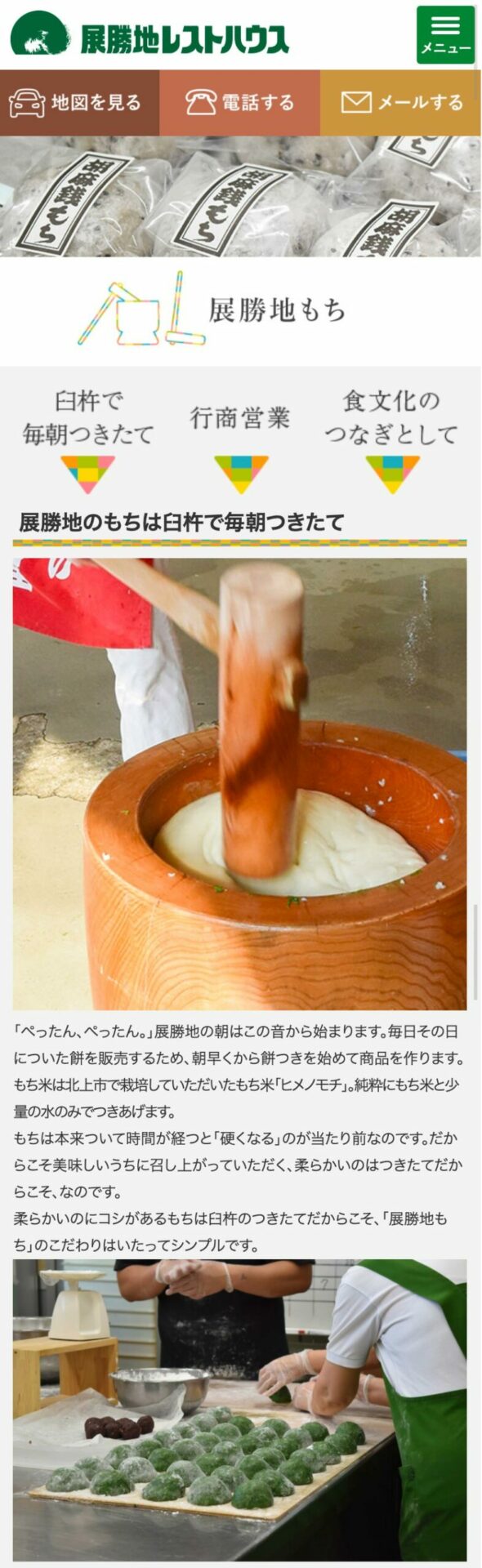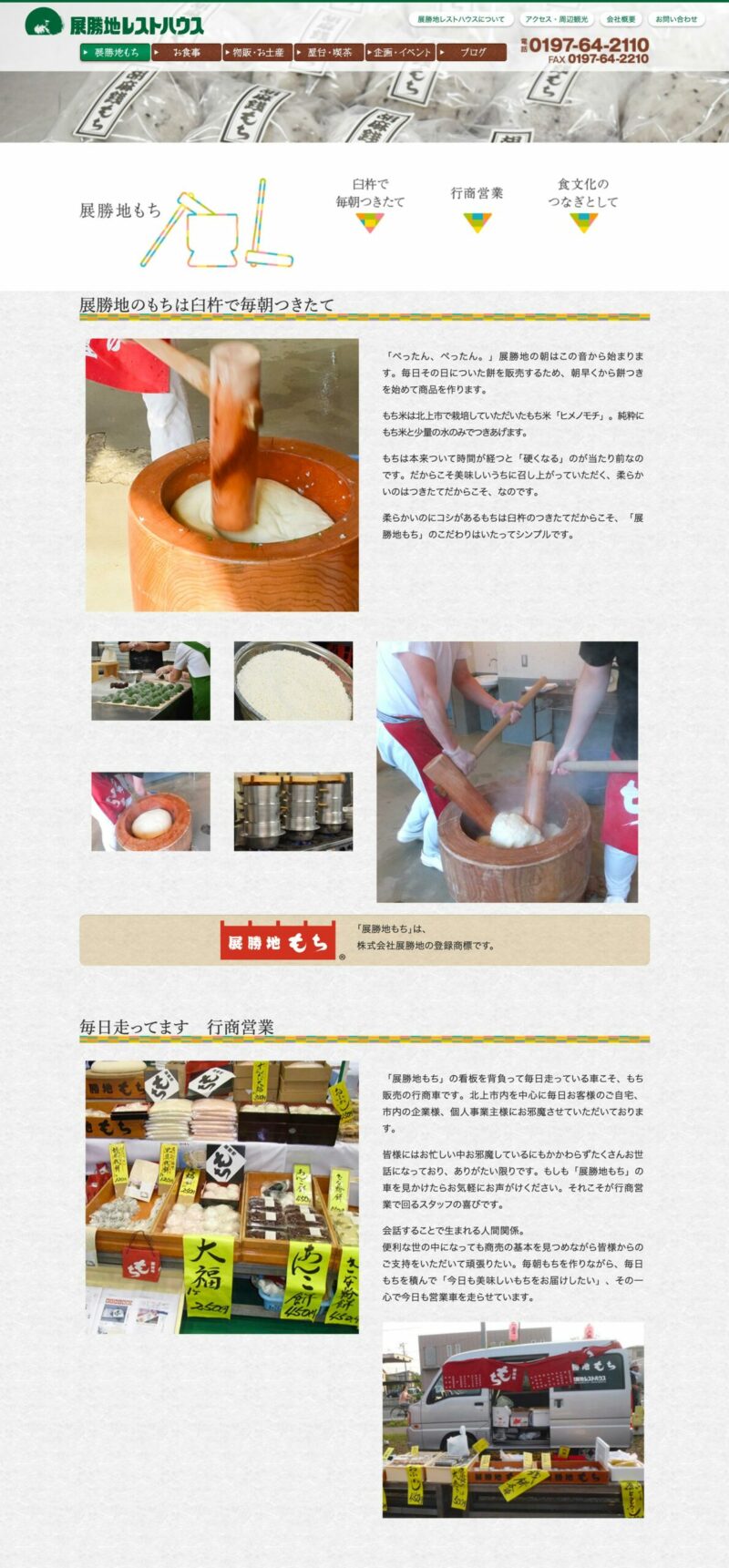 日本さくら名所100選にも認定される景勝地に拠点を置く、生鮮、工芸品販売、喫茶、レストランを営む展勝地レストハウス様のWebサイト。