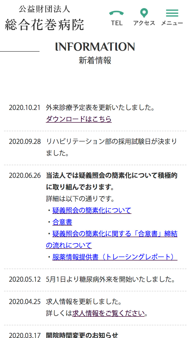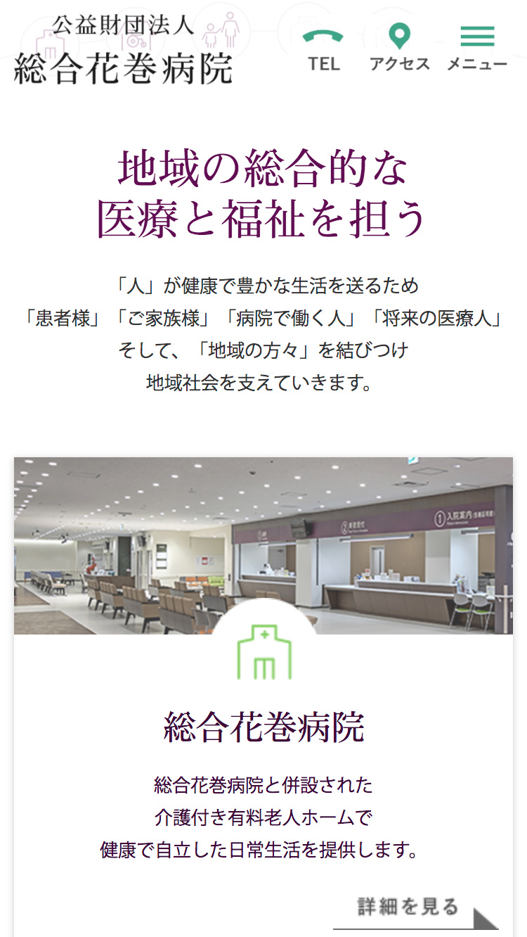 総合花巻病院 様 URLhttp://www.hanamakihospital.or.jp/ 地域・業界・業種 花巻市 / 総合病院 デバイス・仕様PC、スマートフォン、WordPress 担当業務等Webサイト設計/情報設計/デザイン/CMS構築/更新操作指導