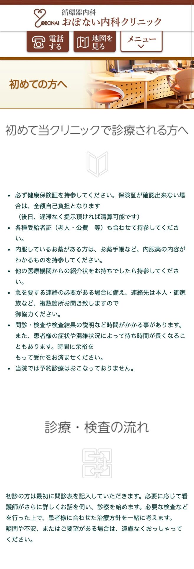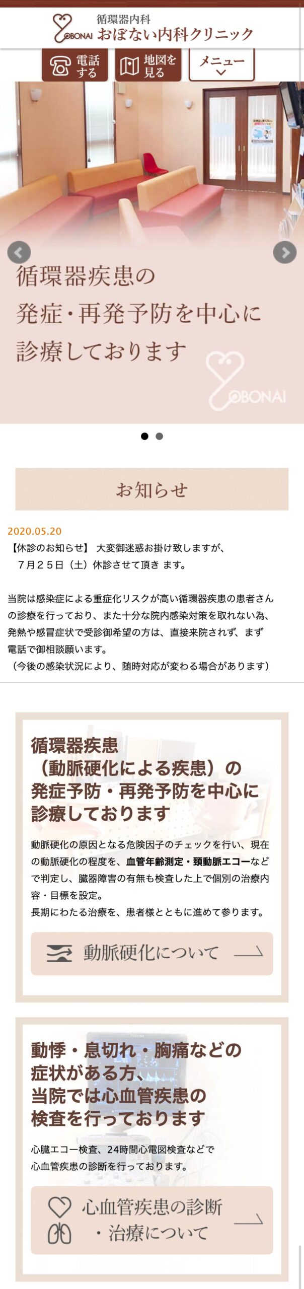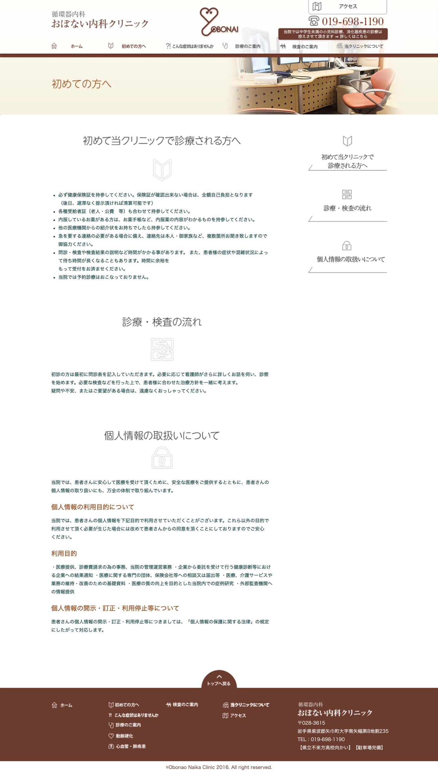 おぼない内科クリニック 様 地域の健康を支える循環器内科クリニックのWebサイト。 多様化する利用者の通信環境に合わせ、スマートフォンへの対応も実施。 トップページだけでも、取り扱う科目(症状)や診療時間、休診日がわかるよう、利用者がすぐに知りたい情報を集約し、利便性を向上。 また、初めての方でも安心して来院していただけるよう、下層各ページでは、対応する様々な症状や、行なっている検査、治療などをより詳しく掲載しています。 URLhttp://www.obonai-clinic.com/ 地域・業界・業種 矢巾町 / 循環器内科 デバイス・仕様PC、スマートフォン、NucleusCMS 担当業務等Webサイト設計/情報設計/デザイン/CMS構築/更新操作指導