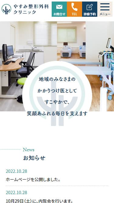 やすみ整形外科クリニック 様 全体の構成はシンプルに、清潔でクリーンなイメージが感じられるようにデザイン。 ロゴマークのモチーフをアイキャッチとして使用。 整然とした印象の中に柔らかさや親しみが持てるようなホームページを作成しました。 URLhttp://y-seikeigeka.com/ 地域・業界・業種 宮古市 / 整形外科 デバイス・仕様PC、スマートフォン、WordPress 担当業務等Webサイト設計/情報設計/デザイン/CMS構築/更新操作指導