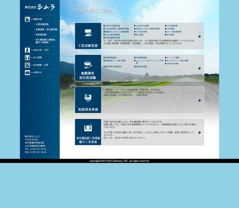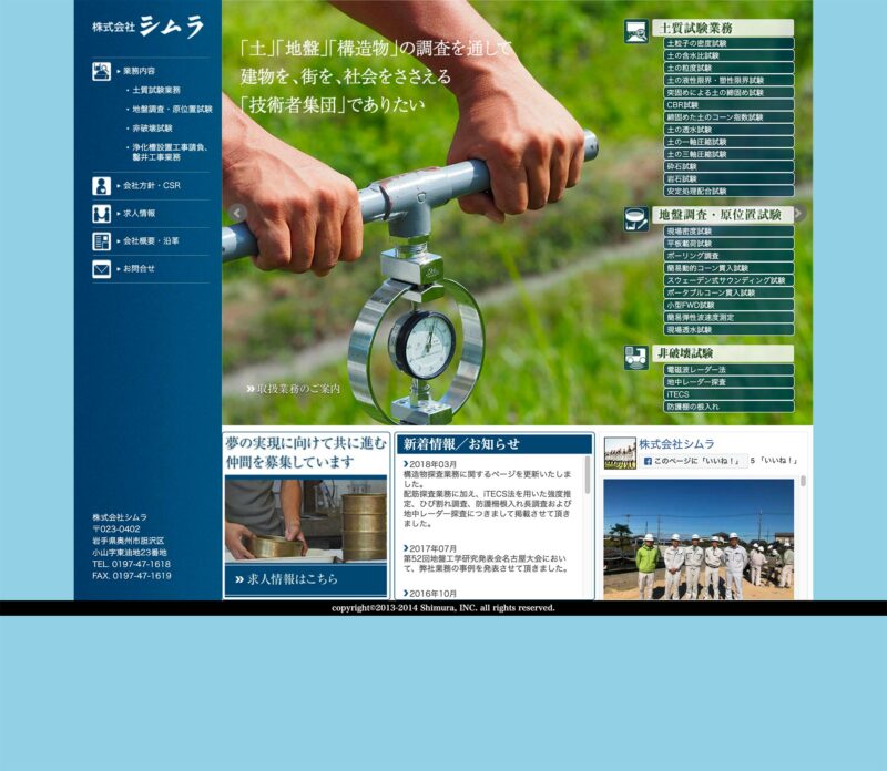 土質試験業務や地盤調査意を主として取り扱う株式会社シムラ様のホームページ。