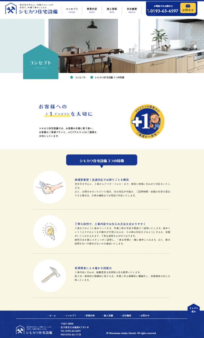シモカワ住宅設備 様 ファーストビューには事業内容を掲載。一目でどんなサービスを取り扱っているかが分かるホームページとなっています。 各所には手書き風のイラストや、社長様の似顔絵を掲載し、親しみやすさが感じられるよう作成しました。 URLhttp://shimokawa-miyako.com/ 地域・業界・業種 宮古市 / 内装工事・外構工事 デバイス・仕様PC、スマートフォン、WordPress 担当業務等Webサイト設計/情報設計/デザイン/CMS構築/更新操作指導