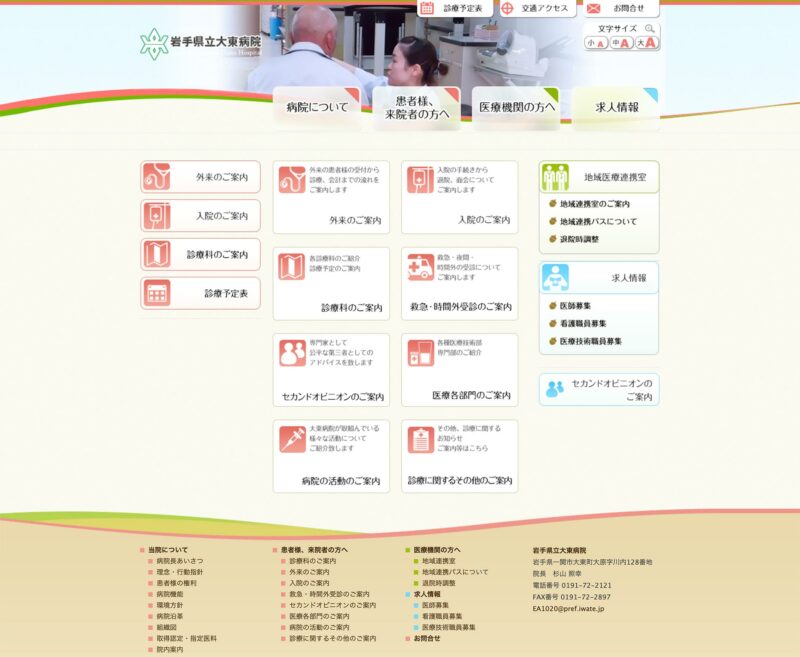 地域医療を支える総合病院、岩手県立大東病院様のホームページ。
