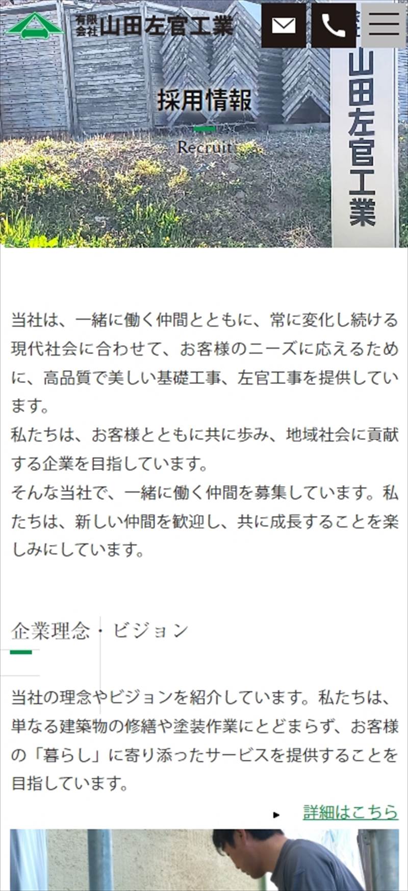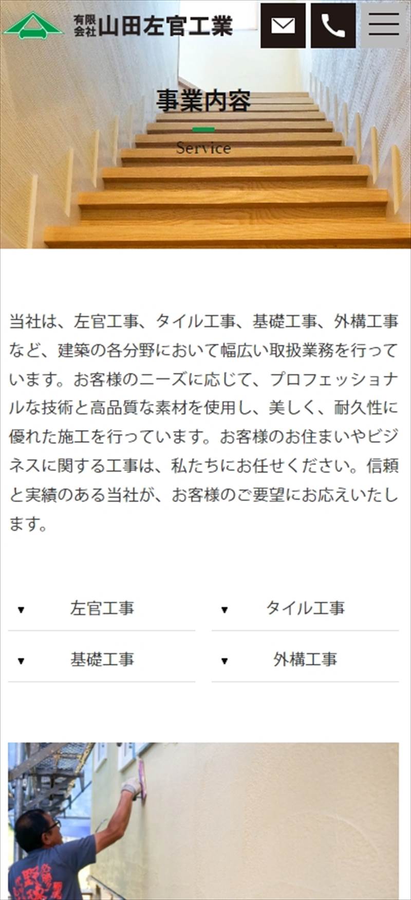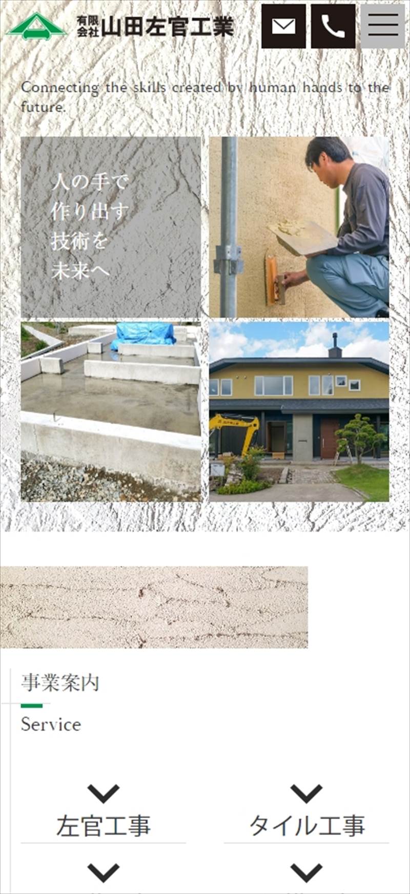 有限会社山田佐官工業 様 左官で作成された壁の写真を背景に、実際に作業している職人の様子を複数掲載し、具体的に仕事中の様子が見えるようにしました。 左官業務の「大変そう」「堅苦しそう」「汚れそう」といったイメージを払拭するため、白ベースで、余白を多めにし、すっきりした清潔感を感じるイメージにまとめました。 URLhttp://yamada-sakan.net/ 地域・業界・業種 紫波町 / 左官工事 デバイス・仕様PC、スマートフォン、WordPress 担当業務等Webサイト設計/情報設計/デザイン/CMS構築/更新操作指導