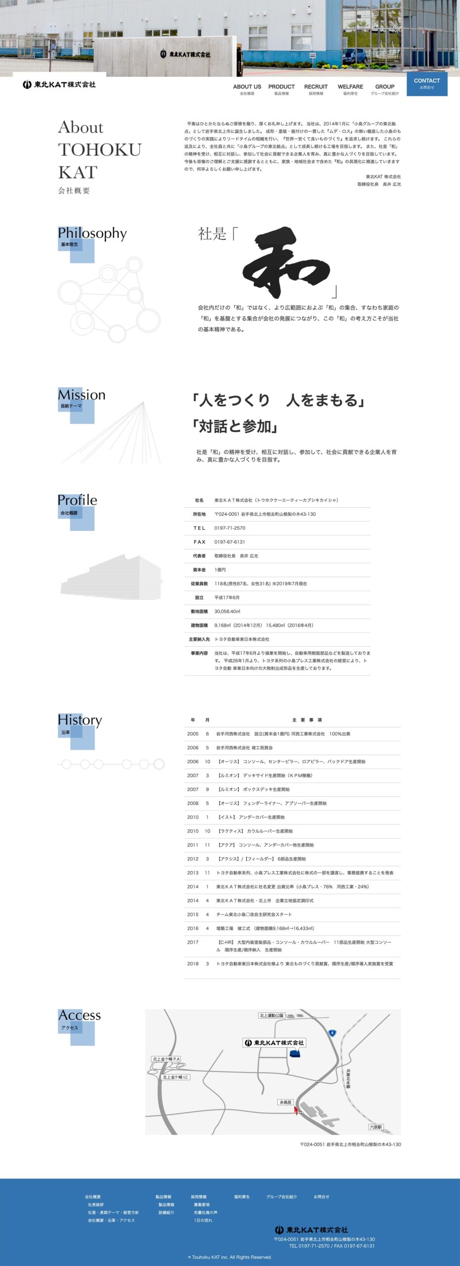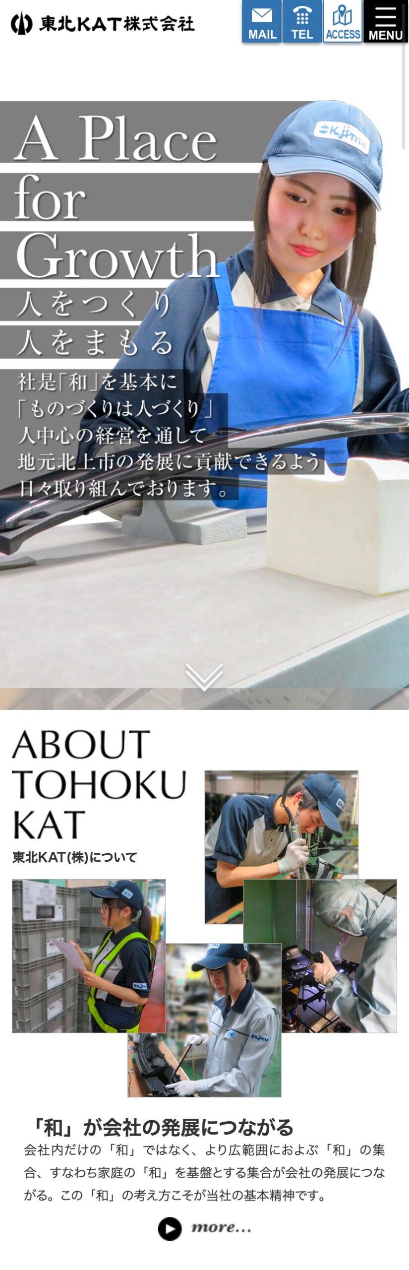 東北KAT 様 自動車用樹脂部品などを中心に製造する同社。求人強化を目的Webサイトをリニューアル。 若い求職者に同社への興味を持ってもらえるるよう、同世代のスタッフの業務に取り組む姿を掲載。 また、精密で高い品質を実現する同社のイメージを、モノトーンの色調に繊細なラインの背景画像で表現し、スタイリッシュな雰囲気にまとめました。 同社が力を入れている福利個性について、独立したページを設け、より多くの求職者に興味を持ってもらえるよう考慮しました。 URLhttp://www.kojima-tns.co.jp/tohokukat/ 地域・業界・業種 北上市 / 製造業 デバイス・仕様PC、スマートフォン、WordPress 担当業務等Webサイト設計/情報設計/デザイン/CMS構築/更新操作指導