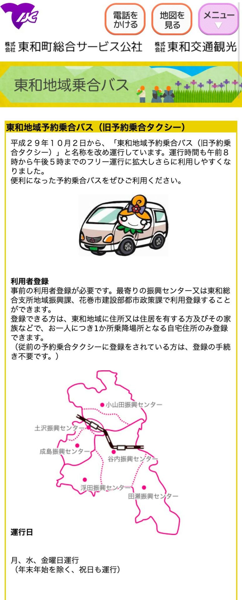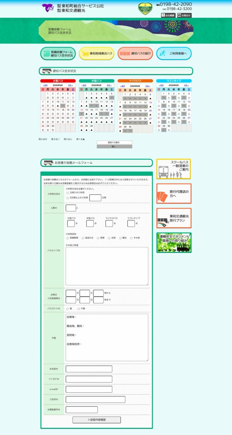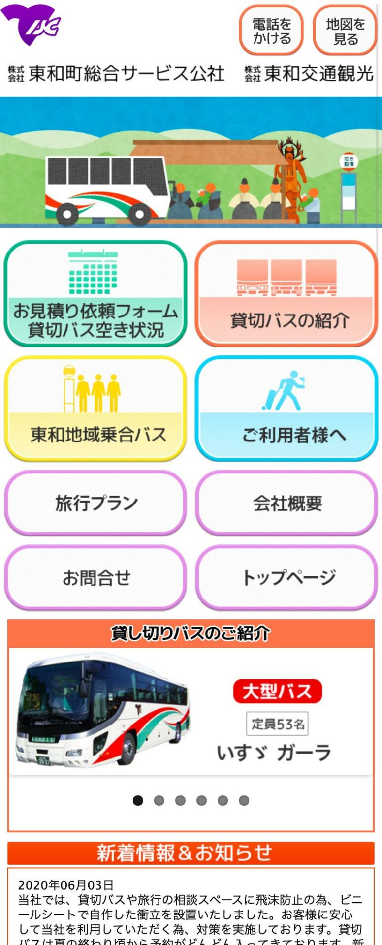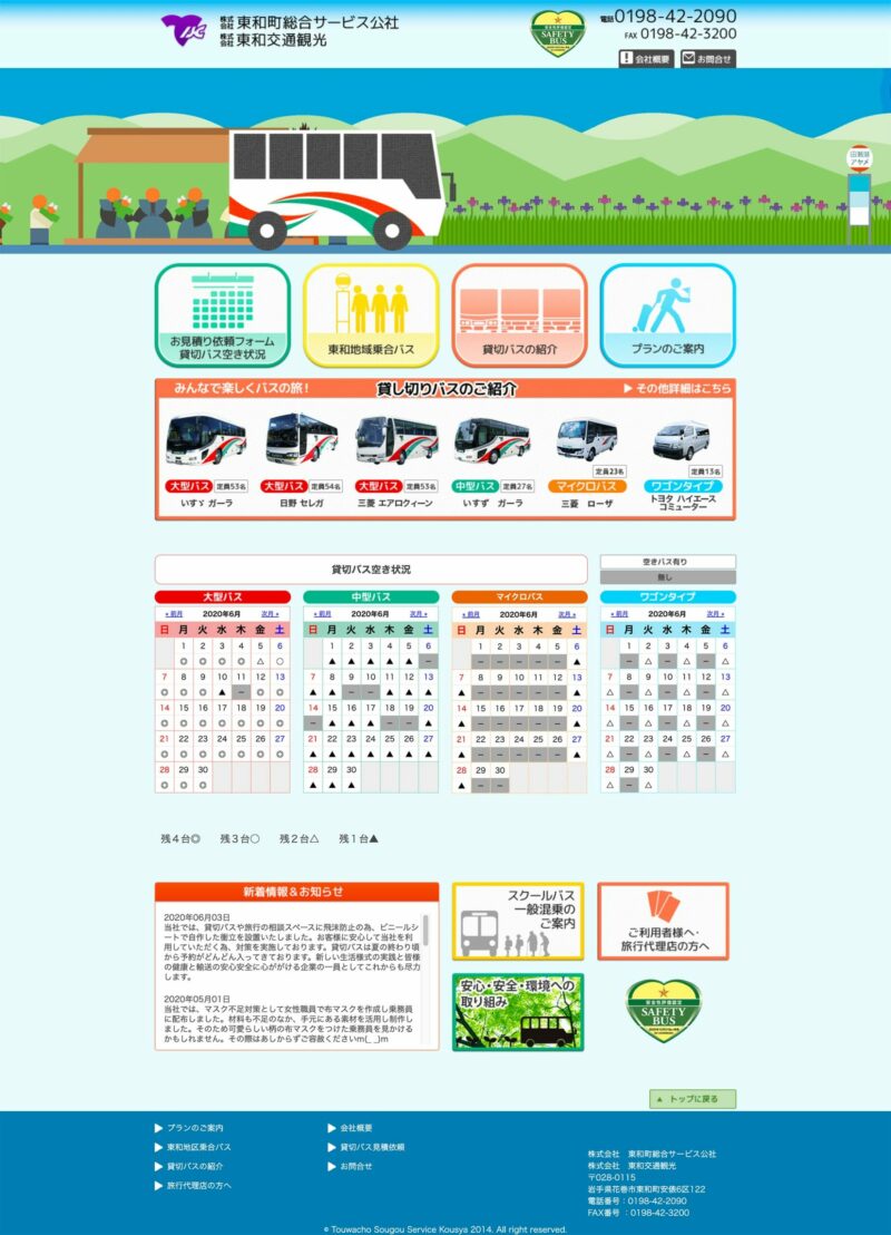 貸切バス、乗合バスの運営を行う東和町総合サービス公社様のホームページ。
