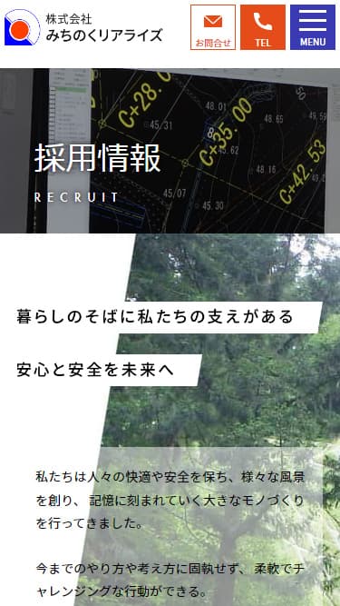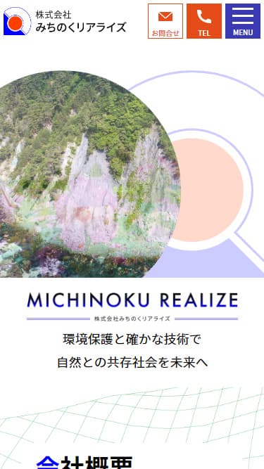 株式会社みちのくリアライズ 様 白をベース色に採用し、明るい雰囲気に。 全体はシンプルな構成に、整然としたイメージを表現。 土木工事を通じて自然環境を守る・共存することを風景の写真と共に表現しています。 URLhttps://michinoku-realize.com/ 地域・業界・業種 盛岡市 / 建設業 デバイス・仕様PC、スマートフォン、WordPress 担当業務等Webサイト設計/情報設計/デザイン/CMS構築/更新操作指導