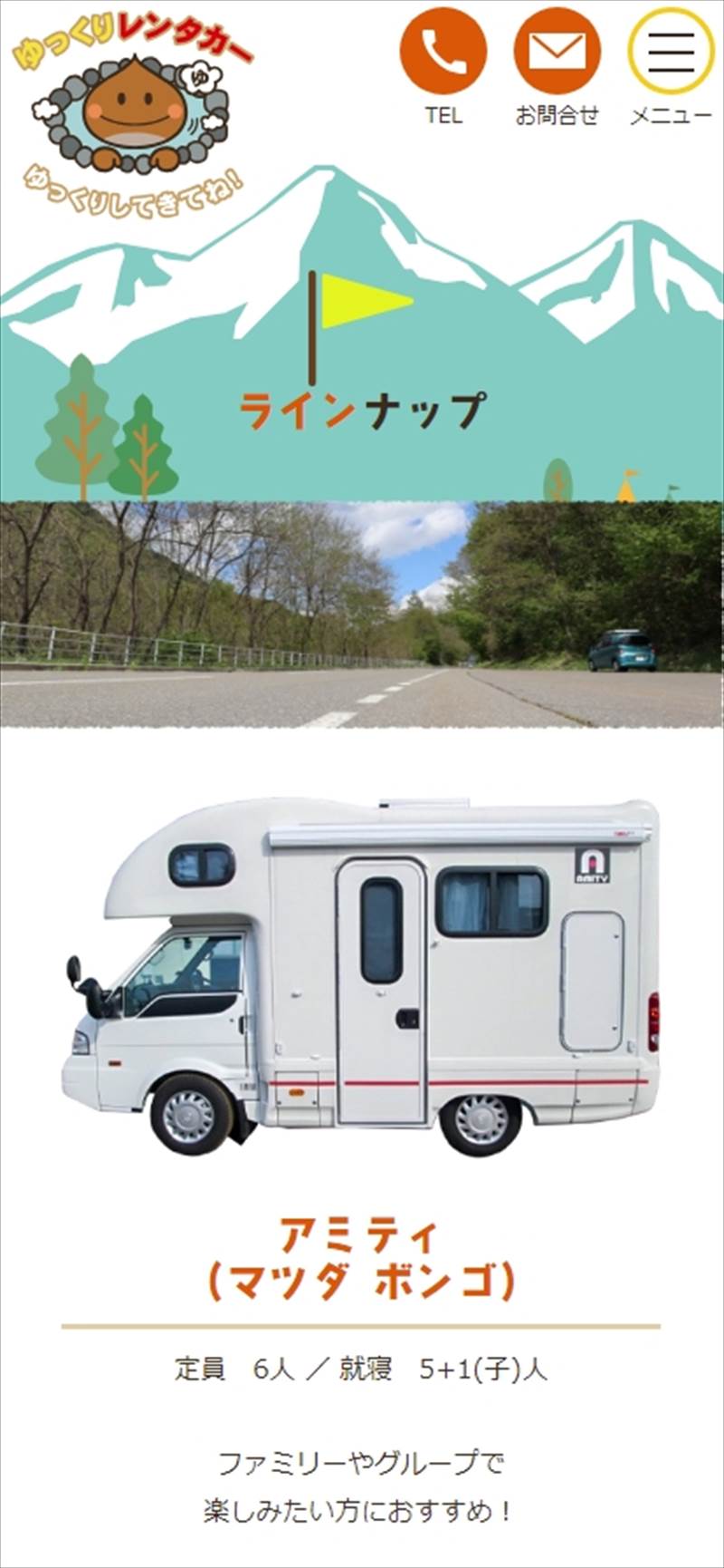 ゆっくりレンタカー 様 賑やかで楽しい雰囲気が感じられるよう、イラストを取り入れ、多色を用い作成。 初めて利用する方でもわかりやすいよう各車両の特徴をトップページから簡単に掲載。 車内や風景のイメージ写真を複数枚掲載し、利用する際のイメージを想像できるようデザイン。 URLhttps://yukkuri-rentacar.com/ 地域・業界・業種 北上市 / レンタカー デバイス・仕様PC、スマートフォン、WordPress 担当業務等Webサイト設計/情報設計/デザイン/CMS構築/更新操作指導