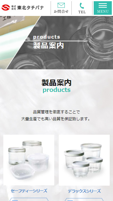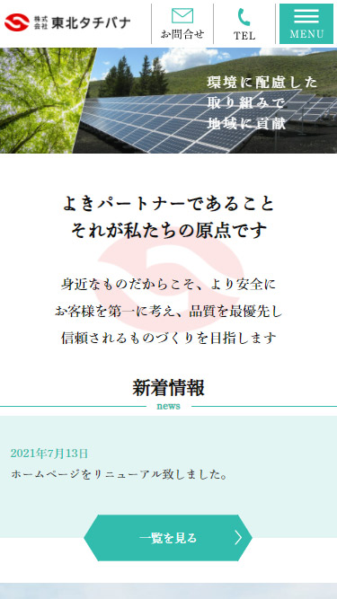 株式会社東北タチバナ 様 製品や、地域の風景、工場などの写真を、全画面で展開するレイアウトです。 スクロール後の部分では、項目ごとに背景を変更し、各内容の区切りが分かりやすいようにしています。 取り扱う製品を写真付きの一覧で掲載し、業務の内容が一目で伝わるように考慮しました。 環境への取り組みについて掲載する部分では、他の部分より大きめの文字サイズで、取り組み内容を紹介しています。 全体的にパステル系の配色で、重苦しくならないよう配慮しました。 URLhttps://www.ttpg-hp.info/ 地域・業界・業種 花巻市 / 製造業 デバイス・仕様PC、スマートフォン、WordPress 担当業務等Webサイト設計/情報設計/デザイン/CMS構築/更新操作指導