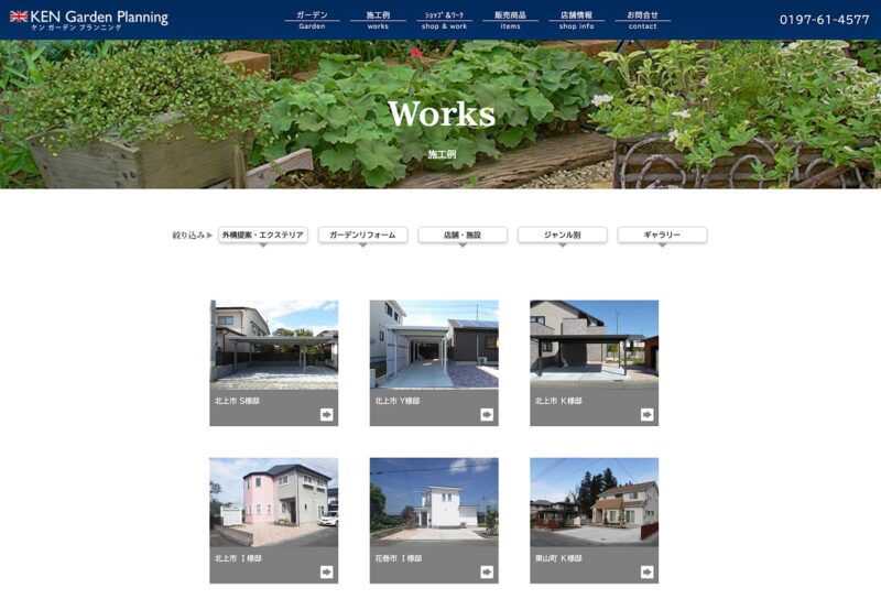 施工例の写真を前面に配置し、何よりも作品(施工例)を見て、魅力を感じ、興味を持ってもらえるような構成としました。