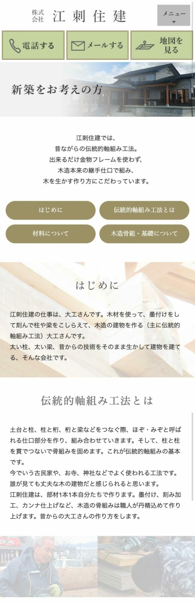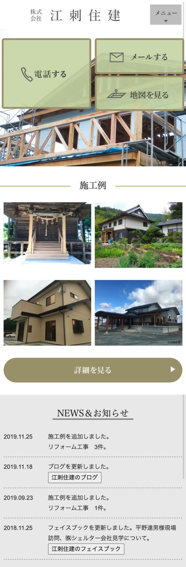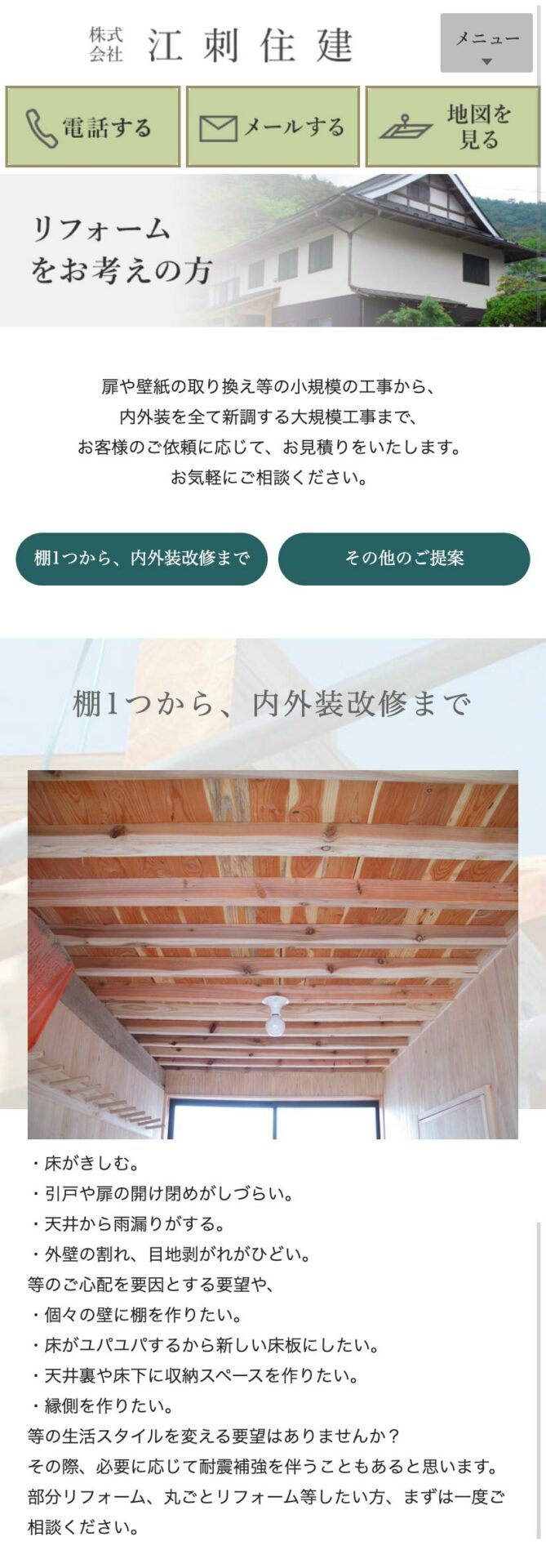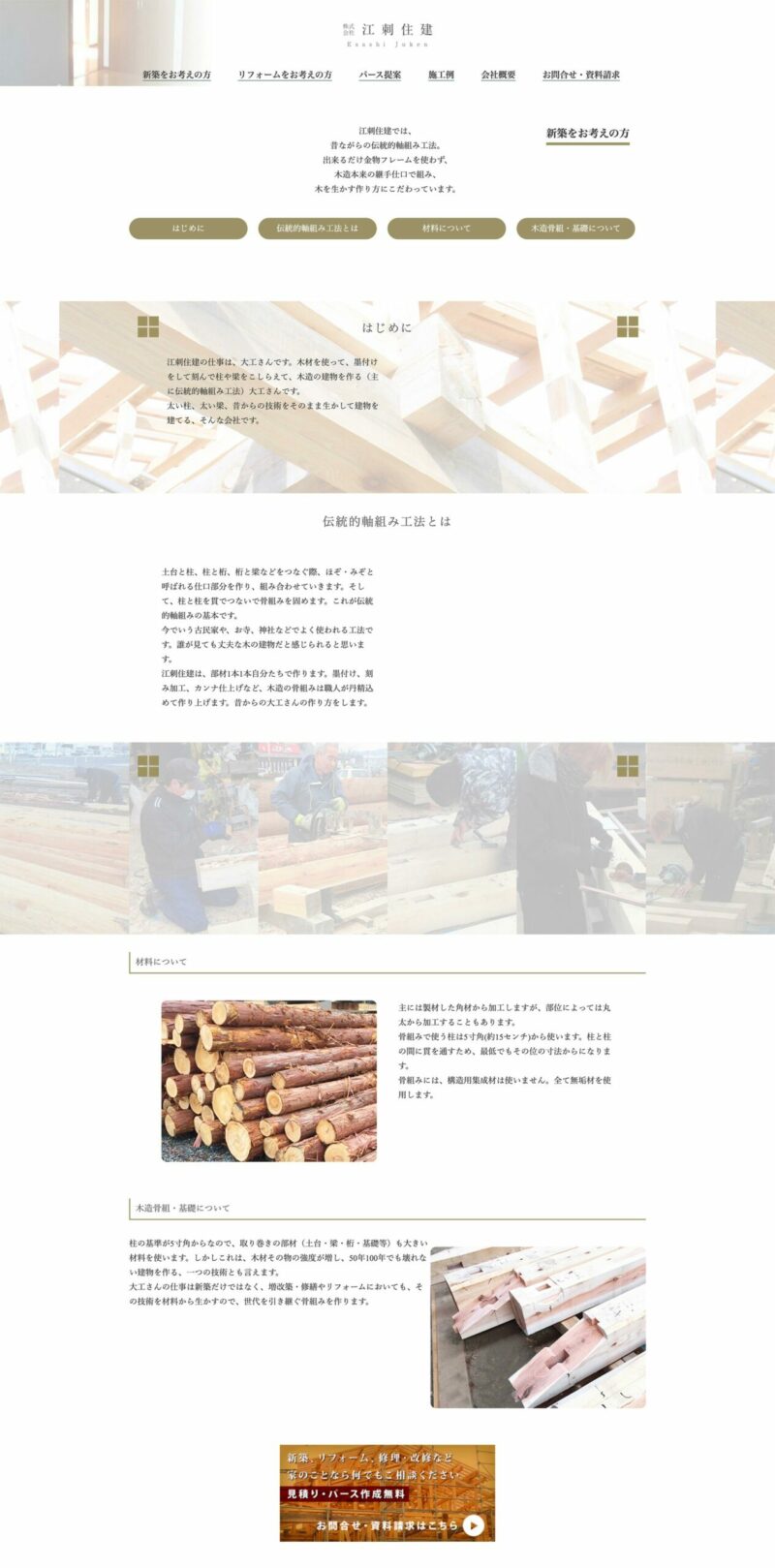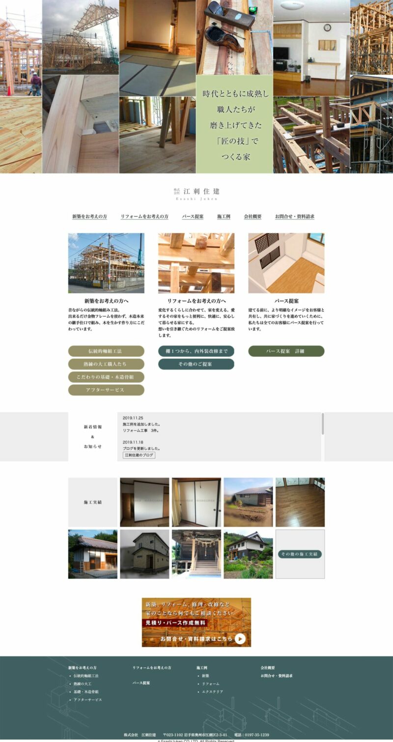 地域密着型で新築からリフォームまでを取り扱う江刺住建様のホームページ。