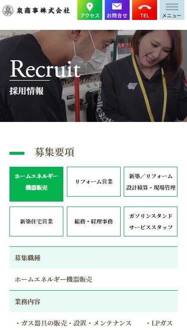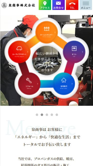 泉商事株式会社 様 清潔感・誠実さ・安全性を表現するため、明るいイメージが伝わるように作成。 各種サービスをそれぞれ色分けし、スムーズに詳細ページへ遷移できるようバナーを配置。 豊富な事業数を前面にPRしたホームページとなっています。 URLhttp://izumi-syoji.co.jp/ 地域・業界・業種 遠野市 / エネルギー・カーライフ デバイス・仕様PC、スマートフォン、WordPress 担当業務等Webサイト設計/情報設計/デザイン/CMS構築/更新操作指導