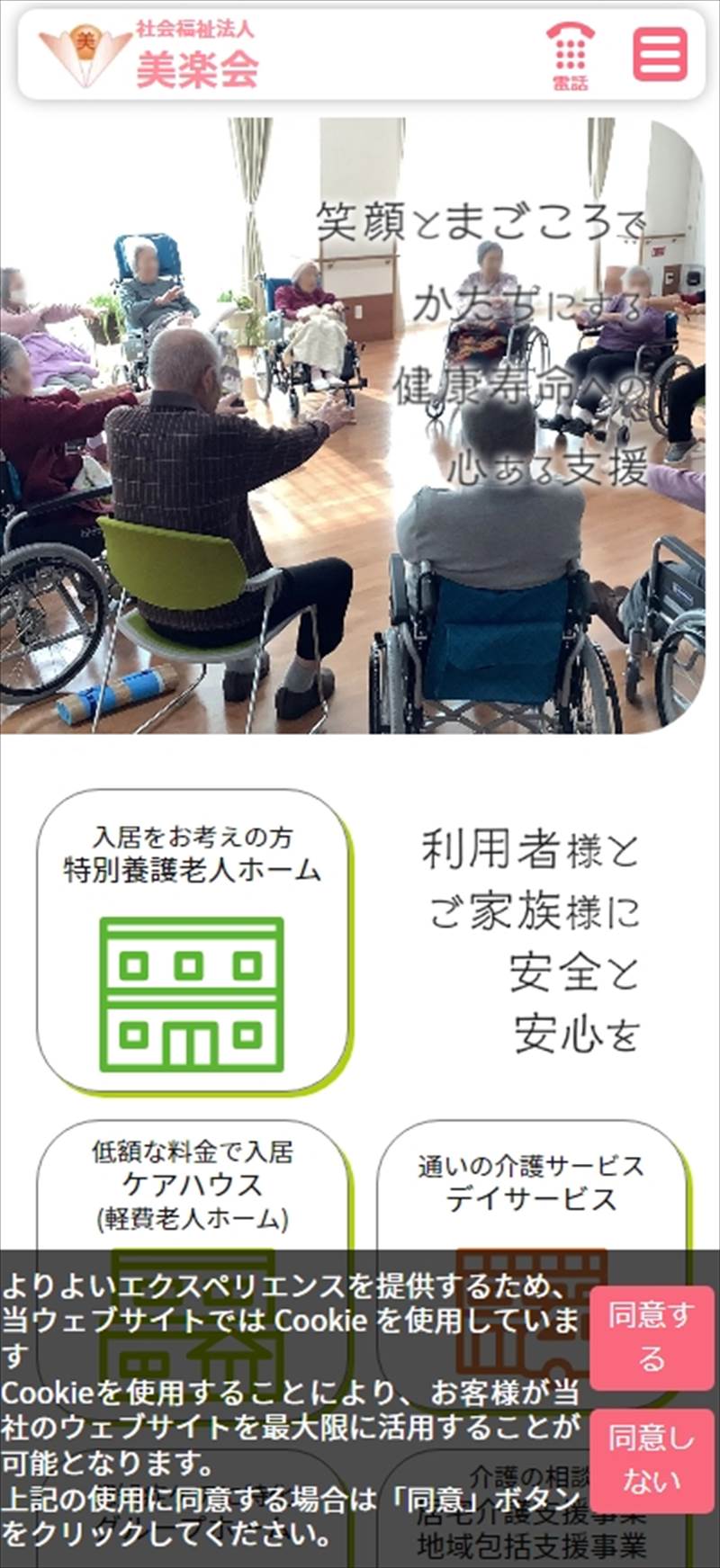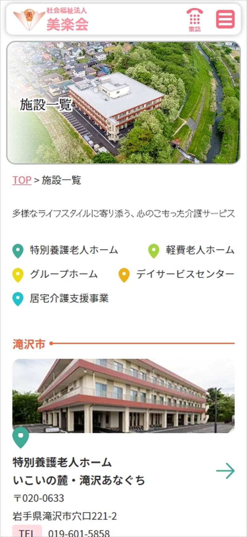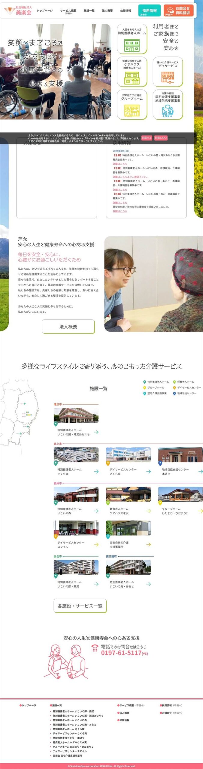 社会福祉法人美楽会 様 誠実さをあらわす直線的な配置の中に、優しさや柔らかさを表現するため角を丸くしたボックスを並べたレイアウトです。 利用者様それぞれに合わせ、最適なサービスを提供する幅広さを表現するため、ファーストビューには、展開するサービスの一覧を配置しました。 また、ページ中程では各施設の一覧を所在地を表す地図とともに掲載し、各地域に暮らす人が、施設の存在をより身近に感じてもらえることを考慮しました。 介護する人の写真と合わせて、地域に根ざしたサービスであることをアピールするため、地元の風景を連想させる、自然豊かな風景の写真を複数配置しています。 URLhttps://mirakukai.com/ 地域・業界・業種 岩手県/宮城県 / 福祉施設 デバイス・仕様PC、スマートフォン、WordPress 担当業務等Webサイト設計/情報設計/デザイン/CMS構築/更新操作指導