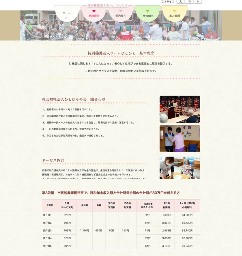 特別養護老人ホームを運営する社会福祉法人 ひとひらの会様のホームページ。