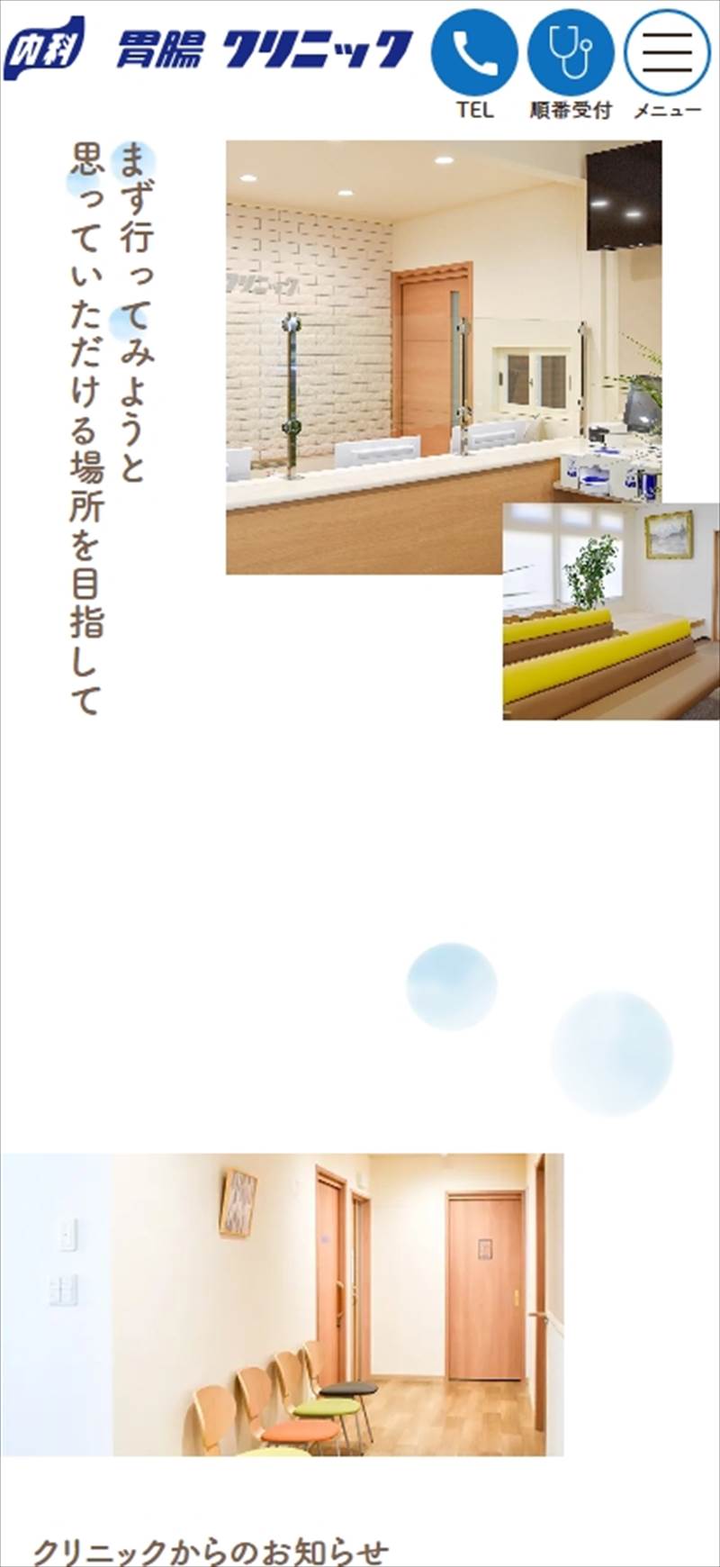 胃腸クリニック 様 明るく柔らかいイメージが伝わるよう白をベースに採用し、ポイントにオレンジ色を使用。 暖色を使用することで温かみのあるデザインに。 コンテンツの間には余白を大きく設け、一画面に見える情報量を最低限に配置。シンプルな構成を維持しつつ、水彩風の装飾等で柔らかさを表現。 URLhttps://ichoclinic.com/ 地域・業界・業種 奥州市 / 医療 デバイス・仕様PC、スマートフォン、WordPress 担当業務等Webサイト設計/情報設計/デザイン/CMS構築/更新操作指導