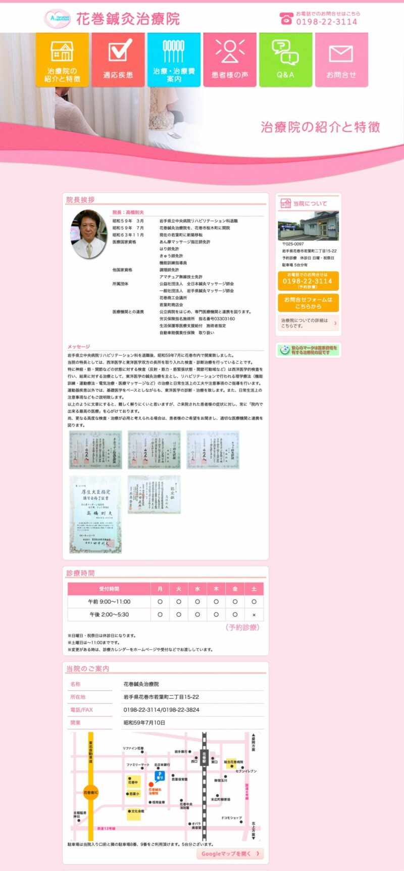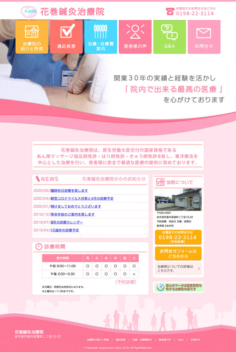 花巻鍼灸治療院 様 ピンクを中心に、明るく淡い色合いの配色で癒しや優しさを表現。 タブレット端末でも操作しやすいよう、メニューボタンなどを大きめに配置。 人や街並みのシルエットを組み合わせることで、町の鍼灸院ということをアピール。 URLhttp://www.sinkyu-c.jp/ 地域・業界・業種 花巻市 / 鍼灸治療院 デバイス・仕様PC、NucleusCMS 担当業務等Webサイト設計/情報設計/デザイン/CMS構築/更新操作指導