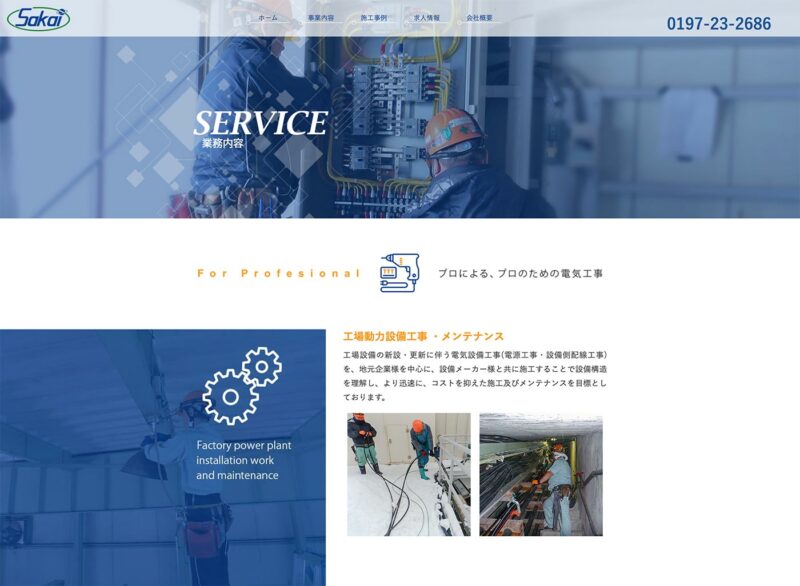 大小様々な工事を取り扱う電気工事会社のwebサイト。