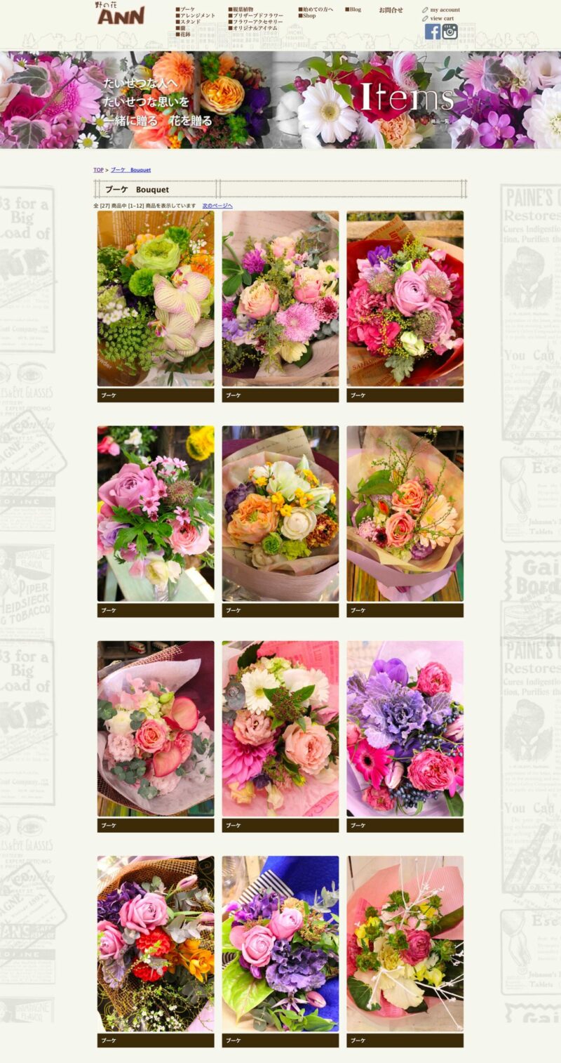野の花 ANN 様 生花、フラワーアレンジメントやプリザーブドフラワー、フラワーアクセサリーなどを取り扱う野の花 ANN様のホームページ。 独自のこだわりを持つ同店のイメージを、年季の入った壁の画像とクラシカルなイラストやモチーフを使用し表現しています。 花の写真がより映えるよう、全体的に色味を抑えていることもサイト全体のビンテージ感を醸し出しています。 URLhttp://ann-smile.com/ 地域・業界・業種 盛岡市 / 花屋 デバイス・仕様PC、カラーミーショップ 担当業務等Webサイト設計/情報設計/デザイン/CMS構築/更新操作指導