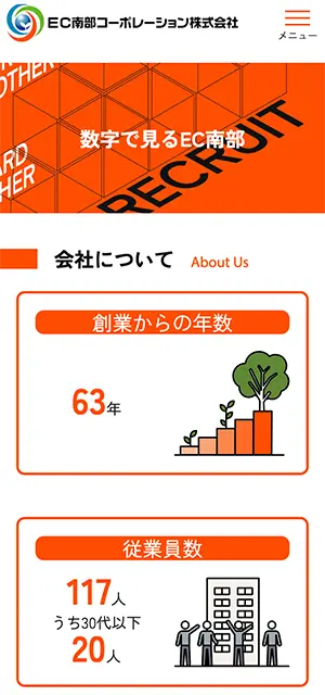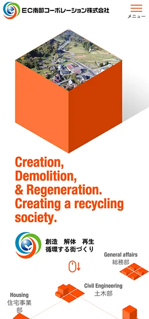 EC南部コーポレーション株式会社 様 事業内容を、世代や性別、企業・個人の分け隔てなく、より広いユーザー層へ周知したいと考え、構成の随所にイラストを配置することで堅苦しさを無くし、親しみやすさを感じさせ、興味を引くよう考慮しました。 一方で、柔らかすぎず、企業然としたイメージや、 信頼感を感じてもらえるよう、白ベースに色数を抑えたシンプルな配色を採用しています。 URLhttp://www.ecnanbu.jp/ 地域・業界・業種 奥州市 / 建築、建設、運送業 デバイス・仕様PC、スマートフォン、WordPress 担当業務等Webサイト設計/情報設計/デザイン/CMS構築/更新操作指導