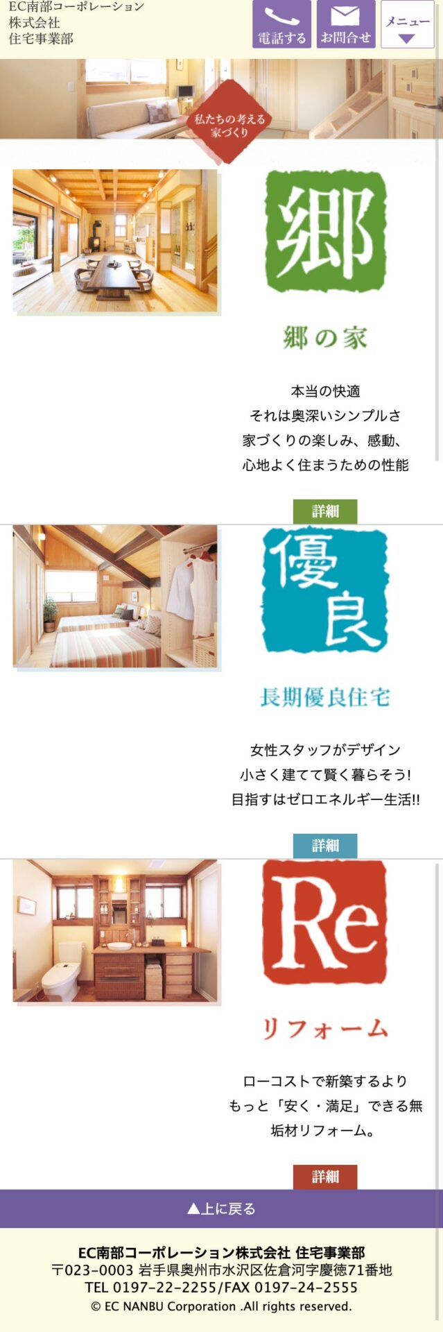 郷の家事業部としてのホームページを制作。