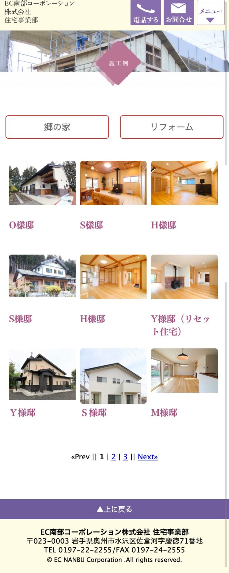 トップページから施工例を掲載し、施工イメージが伝わる構成となっています。