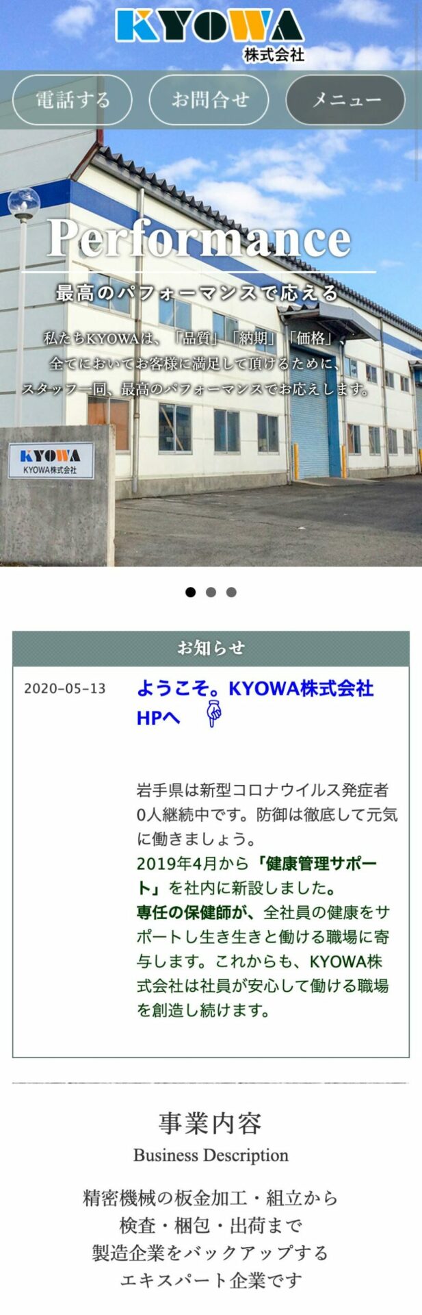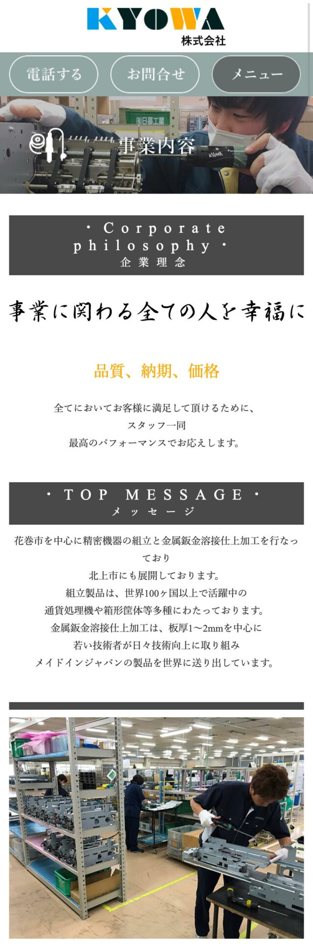 精密機器の組立と金属鈑金溶接仕上加工などを行う、KYOWA株式会社様のWebサイト。