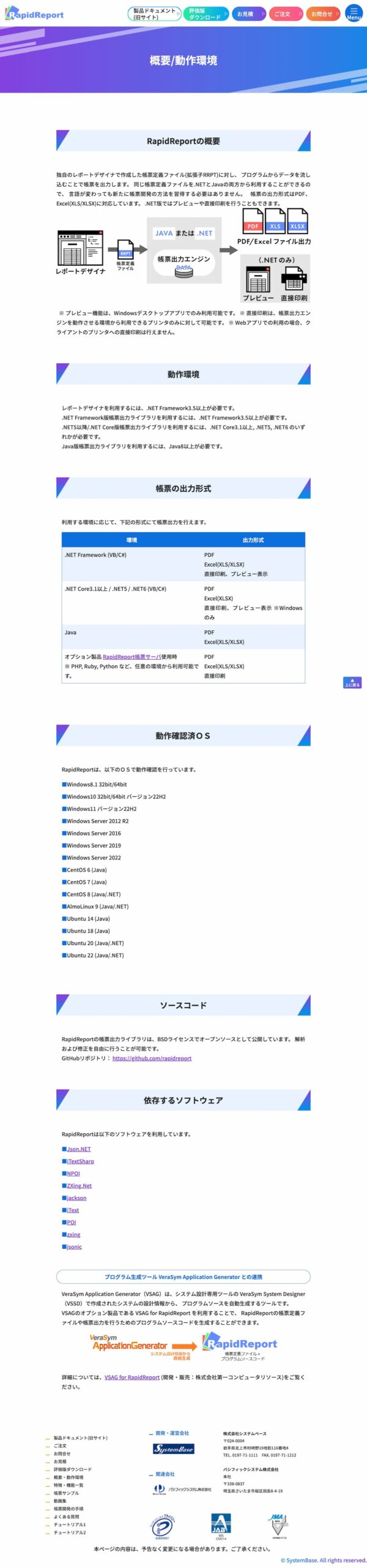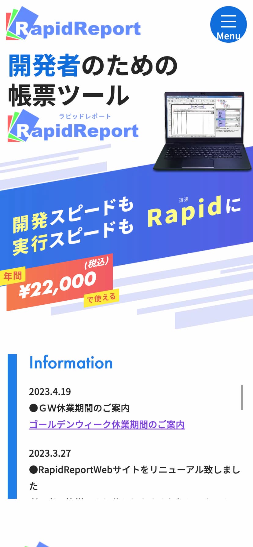 RapidReport/株式会社システムベース 様 背景には斜めのオブジェクトを用い迅速というイメージを表現。 開発担当の方以外が見てもわかりやすいよう、キャッチコピーは簡潔にわかりやすく掲載。 アイキャッチとしてイラストを掲載。また、セクションごとに色分けをし見やすさを重視。 ページ下部についても、キャッチコピーだけである程度概要が分かるよう構成。 URLhttps://www.systembase.co.jp/rapidreport/ 地域・業界・業種 北上市 / ソフトウェア開発 デバイス・仕様PC、スマートフォン、WordPress 担当業務等Webサイト設計/情報設計/デザイン/CMS構築/更新操作指導