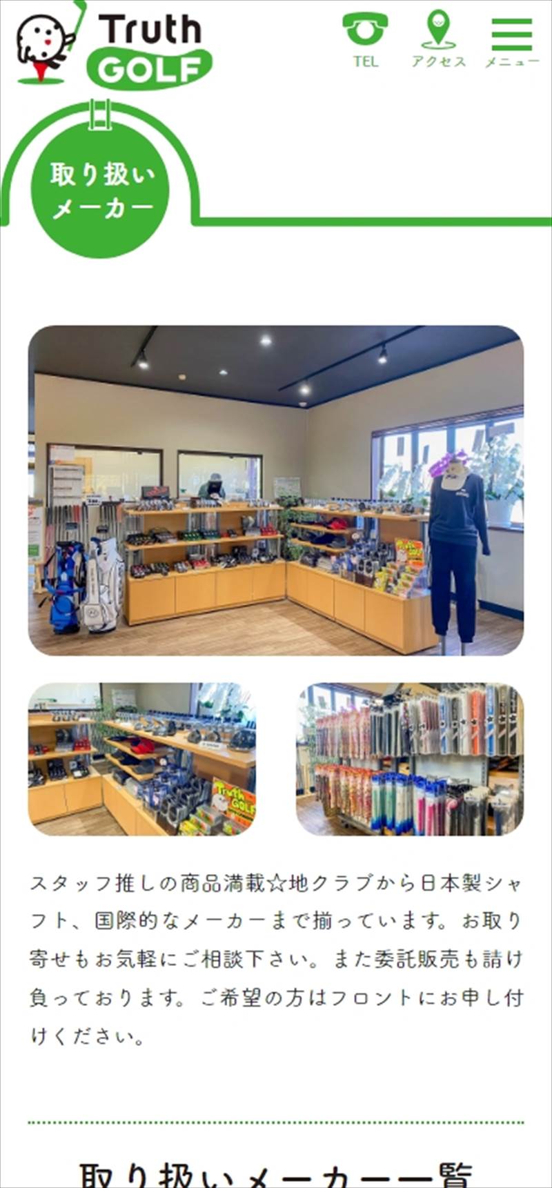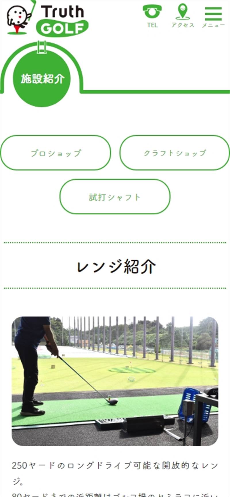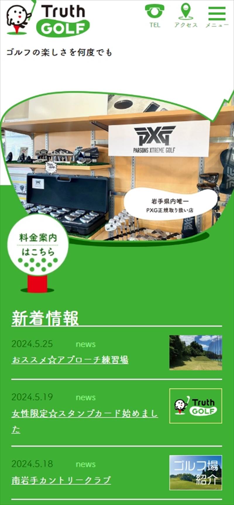 Truth GOLF 様 気軽に来れるゴルフ場をコンセプトに、シンプルで親しみやすい雰囲気に仕上げた案。 ロゴの緑と白をメインに構成、親近感を持てるよう全体的に丸みを帯びたデザインで統一。 魅力・特徴を掲載、アピールするでユーザーが興味を持てるよう工夫。 またメニューは一目でわかるようアイコンを作成し、新規の人が迷わないよう構成。 URLhttps://truth-golf.com/ 地域・業界・業種 奥州市 / ゴルフ練習場 デバイス・仕様PC、スマートフォン、WordPress 担当業務等Webサイト設計/情報設計/デザイン/CMS構築/更新操作指導
