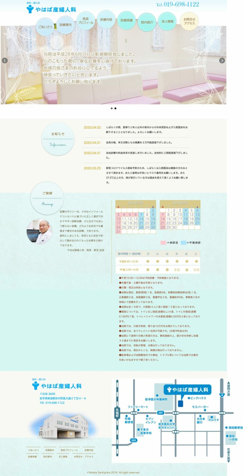 北上市/庭園の設計・施工株式会社 丸重 KENガーデンプランニング 様 北上市/福祉施設社会福祉法人 博愛会 様 奥州市/産婦人科小見レディースクリニック 様 花巻市/特別養護老人ホーム社会福祉法人 セントラル もとだて荘 様 花巻市/美容室Hair Make IDOL 様 花巻市/旅館はなまき金矢温泉 株式会社 様 花巻市/歯科医療法人 久誠会 不動大橋歯科クリニック 様 一関市/運送東山運輸 株式会社 様 盛岡市/ガス事業盛岡ガス燃料 株式会社 様 紫波町/カーライフ、自動車板金塗装・新中古車販売株式会社 OSF 様 一関市/建築、住宅、不動産平野組 様 花巻市/産業機械小沢商店 様 北上市/設計製作、製造北上鐵工 様 一関市/住宅・リフォーム牧野産建 様 平泉町/旅館大沢温泉旅館 様 奥州市/電気工事酒井電気 様 矢巾町/配管工事東新工業 様 奥州市/建築・設計有限会社 アトリエ匠・安部建築計画 様 西和賀町/障害者支援施設潤沢会 様 金ケ崎町/ピアノ販売ピアノ壱番館 様 花巻市/音楽教室正時堂 様 滝沢市/掘削工事長内水源工業 様 花巻市/歯科技工エフケーデンタル 様 金ケ崎町/生コンクリート製造六原 様 奥州市/舗装工事協友建設 様 北上市/鉄道工事第一鉄道 様 金ヶ崎町/食品加工業株式会社ハローワーク 様 北上市/製造業東北KAT 様 一関市/ケーキ販売パティスリーフジ 様 北上市/介護用品販売幸和産業 様 奥州市/福祉施設社会福祉法人優愛福祉会 様 奥州市/福祉施設ケアサービスゆたか 様 矢巾町/産婦人科やはば産婦人科 様 矢巾町/循環器内科おぼない内科クリニック 様 盛岡市/循環器内科循環器内科 金矢クリニック 様 二戸市/小児科・アレルギー科ほそかわ小児科クリニック 様